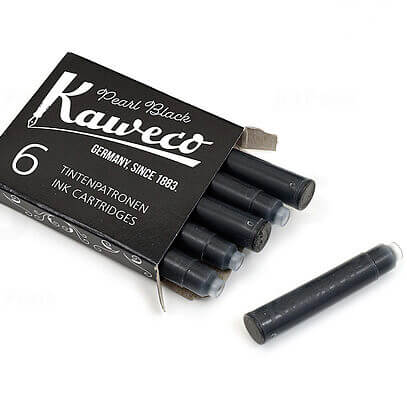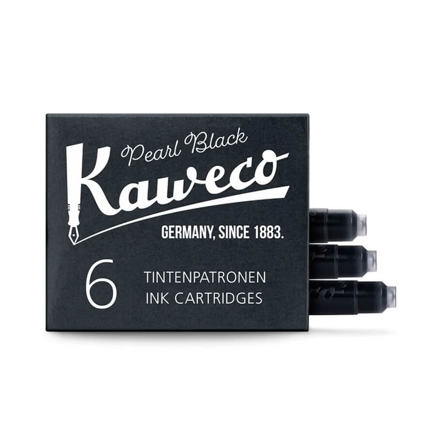 This handy little pack of 6 Pearl Black ink cartridges from Kaweco is just the thing to keep your words flowing. Whether you're jotting down plans, journaling big ideas, or writing that heartfelt note, these rich black cartridges deliver smooth, consistent ink with every stroke.