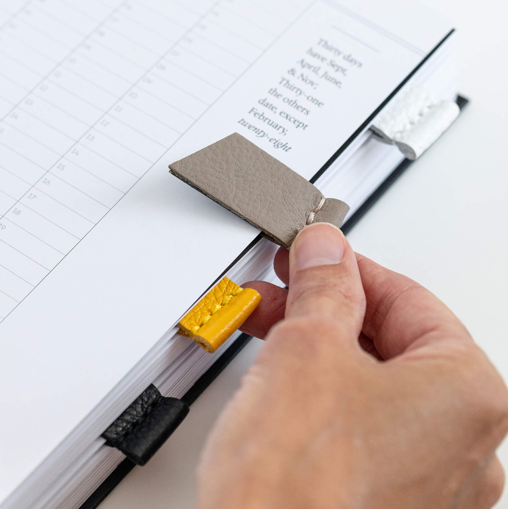Made from buttery soft leather and handcrafted in the UK, these smart magnetic markers snap neatly around any page, helping you quickly flip back to what matters, whether it’s today’s to-dos, last week’s goals or your big “a-ha!” moment. They clip firmly, never slip, and make it a joy to keep your planner, notebook or even your current read beautifully organised.