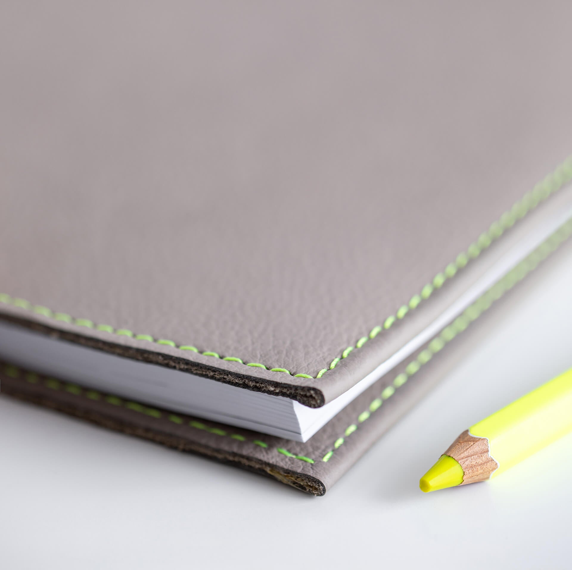 Our leather notebook covers are crafted from buttery soft, pebble-grain leather and finished with either a bold pop of neon stitching for that extra edge or matching stitching for a sophisticated finish.